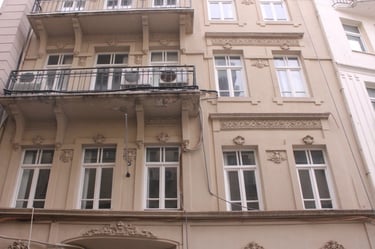 Opposite the building is the French palace. The 1884 Huber map also shows the Camondo family building was built in the early 1880s. According to inventory books at the Nissim de Camondo Museum, it is understood that on Polish Street, under its present name Nuri Ziya Street, the family had another structure other than this structure, but no information about this structure has reached the present day. They expressed these two structures as special structures. From this information, it is understood that the architect of the structure was Stampa. In the inventory book, it says that Stampa converted one of these two private houses into an apartment structure. The structure, which also contains motifs from the Art-Nouveau movement, was built in an eclectic style.
